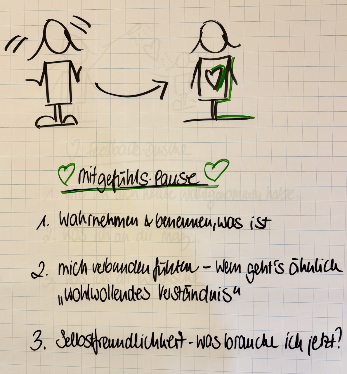 Hast du eine Lieblingsmethodik? fragt mich eine Teilnehmerin letzte Woche beim Workshop „Positive Selbstführung“. Ja, unbedingt. Aktuell mag ich als Grundkonzept den Gedanken des inneren Teams sehr und arbeite viel damit. Doch ganz konkret wende ich fast täglich die sogenannte Mitgefühlspause an und empfehle sie sehr gerne in Workshops und Coachings weiter. Die Mitgeffühlspause besteht …